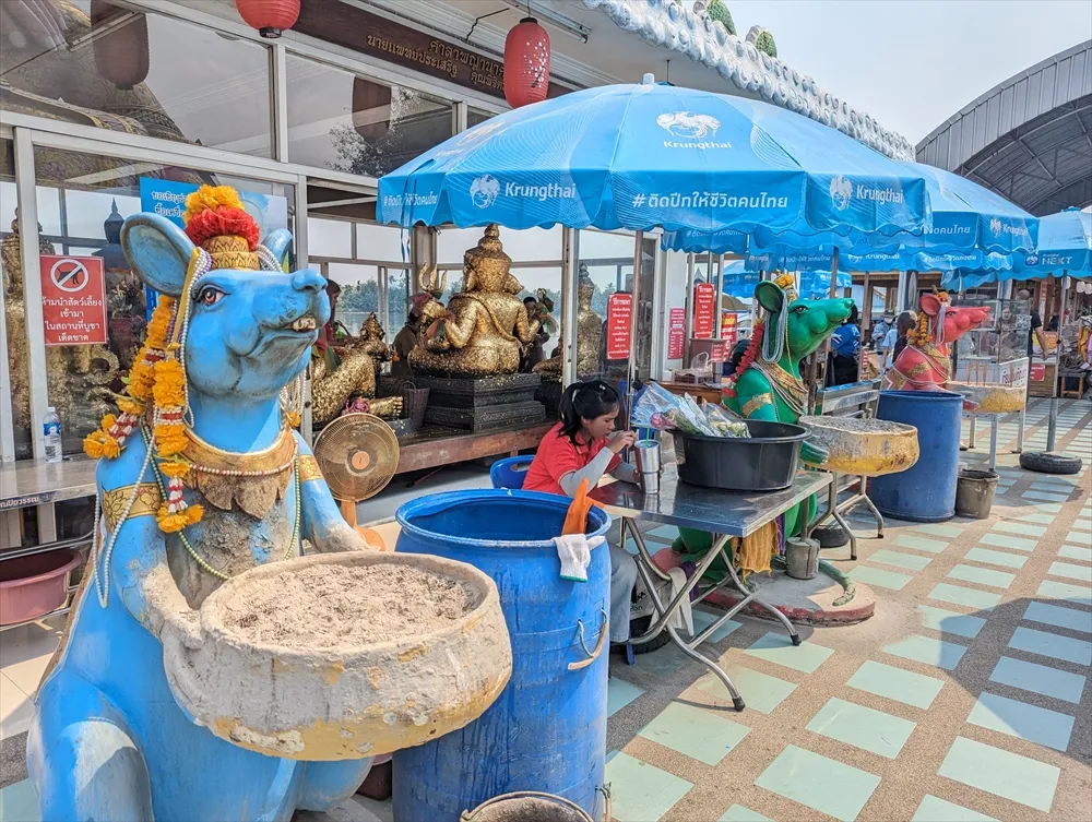 参拝者は、ソートン大仏に金箔を貼り、願い事が叶ったらゆで卵やダンスを奉納するという風習があります。