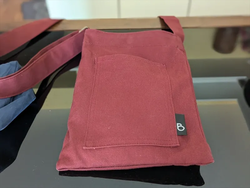 パスポート、スマホ、お財布、ハンカチが入る大きさ。