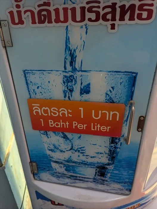 これ、コイン式給水機を使うと、1リットル=1バーツだったので、お安い!