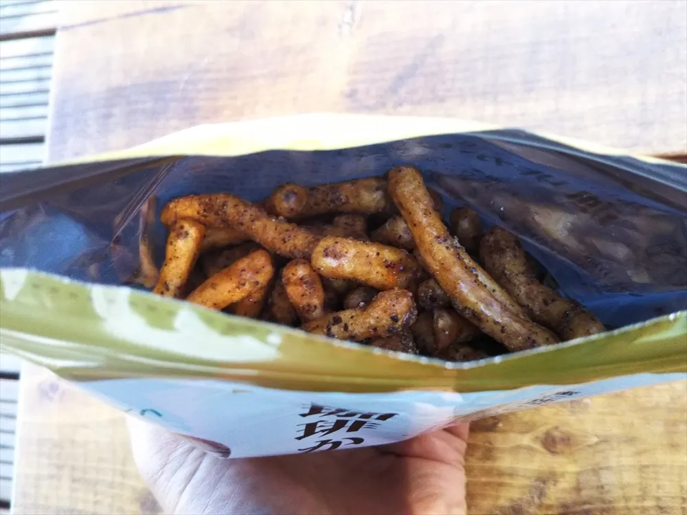 おやつは200kcal以内に抑えたいところなので、2人で1袋たべるとちょうど良いかもしれません。